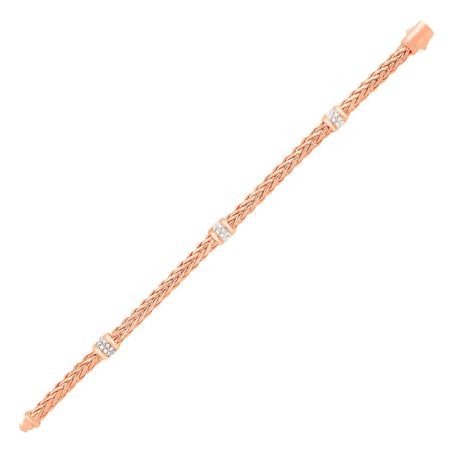 Polished Woven Rope Bracelet with Diamond Accents in 14k Rose Gold